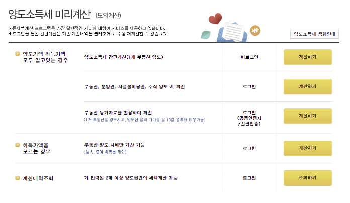 이때 로그인 없이도 양도소득세 자동계산을 이용할 수 있습니다.