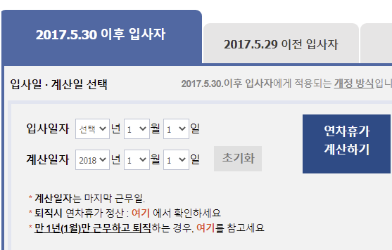 연차휴가일수 계산 계산기