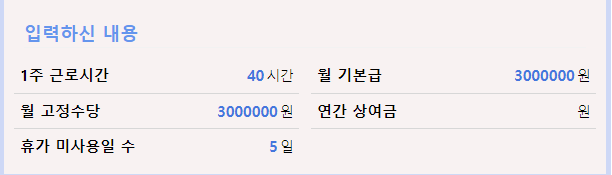 입력한 정보를 기반으로 연차수당을 쉽고 빠르게 확인할 수 있습니다.