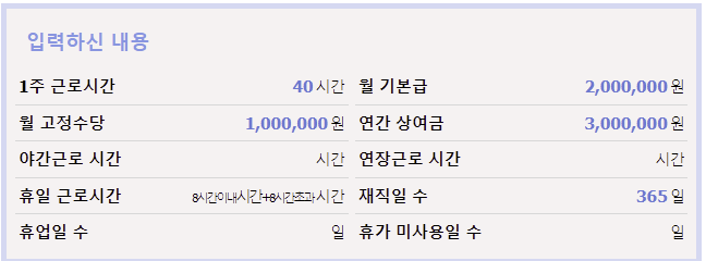 통상임금 계산기를 활용하면 간단한 내용 입력만으로 통상임금을 쉽게 계산해 볼 수 있습니다. 이렇게 계산된 통상임금을 정확히 알고 계셔야 제대로 반영되었는지 확인해 보시기 바랍니다.