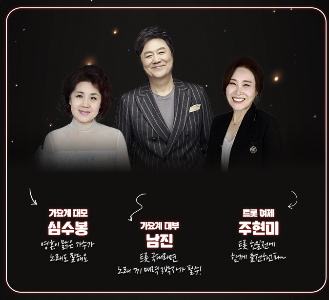 현역가왕은 현재 활발하게 활동 중인 현역들의 대결이라 어느 경연보다 수준 높은 퀄리티로 참가자들을 긴장하게 만들고 있습니다.