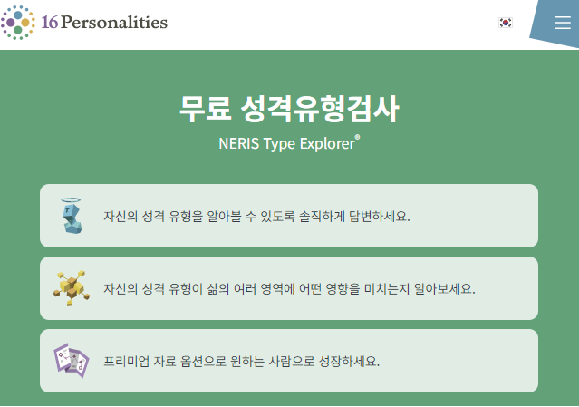 MBTI 성격 유형검사 무료 테스트 해볼까요? MBTI 성격 유형검사 테스트 하기 위해서는 공식적으로 잘 알려져 있고 신뢰할 수 있는 곳에서 무료 검사를 해야 정확한 MBTI 성격 유형을 알 수 있습니다.